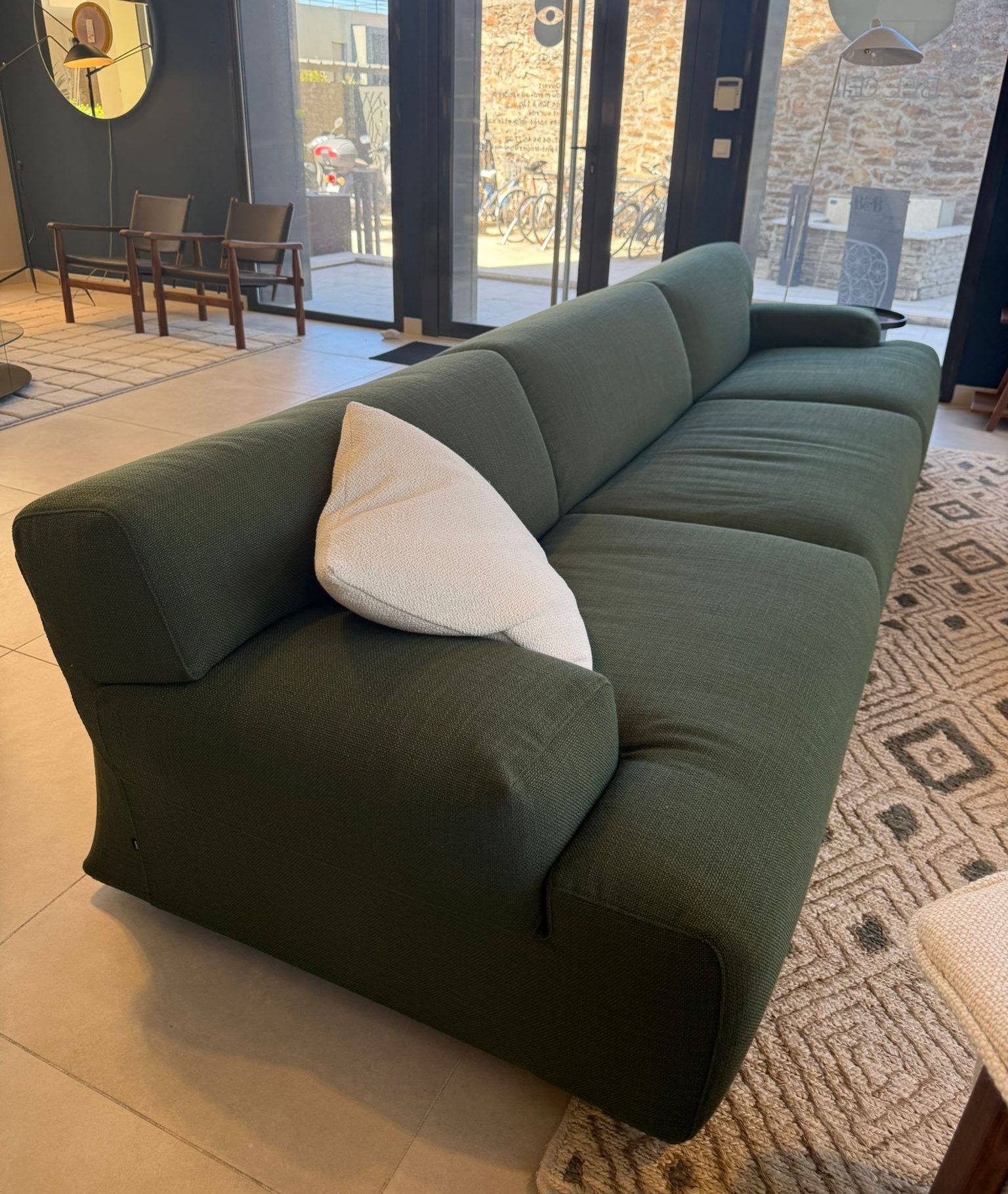 Pensé pour être facilement démontable en fin de vie, le canapé Fiandra anticipe les exigences contemporaines en matière de recyclage et d’éco-conception.