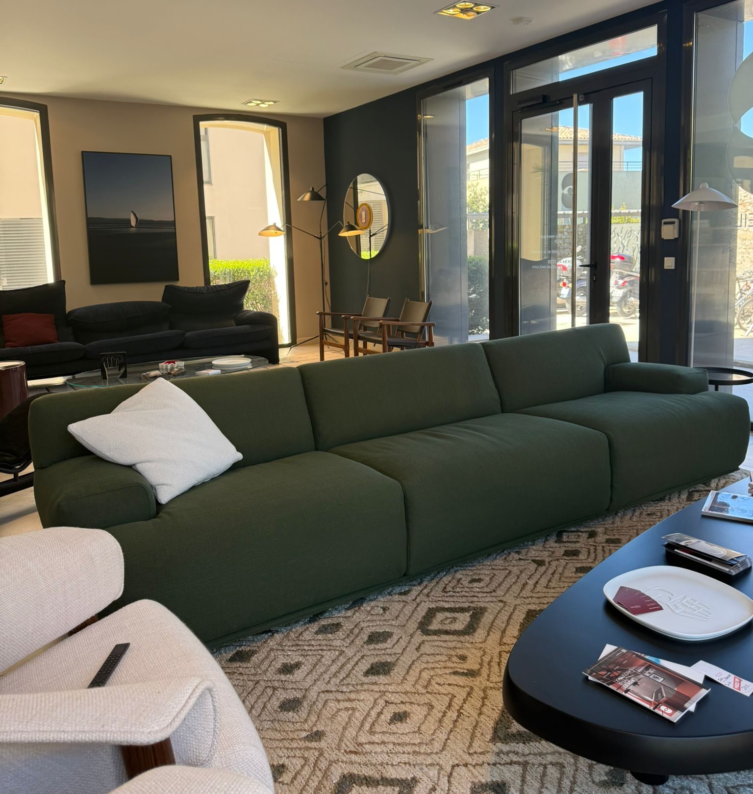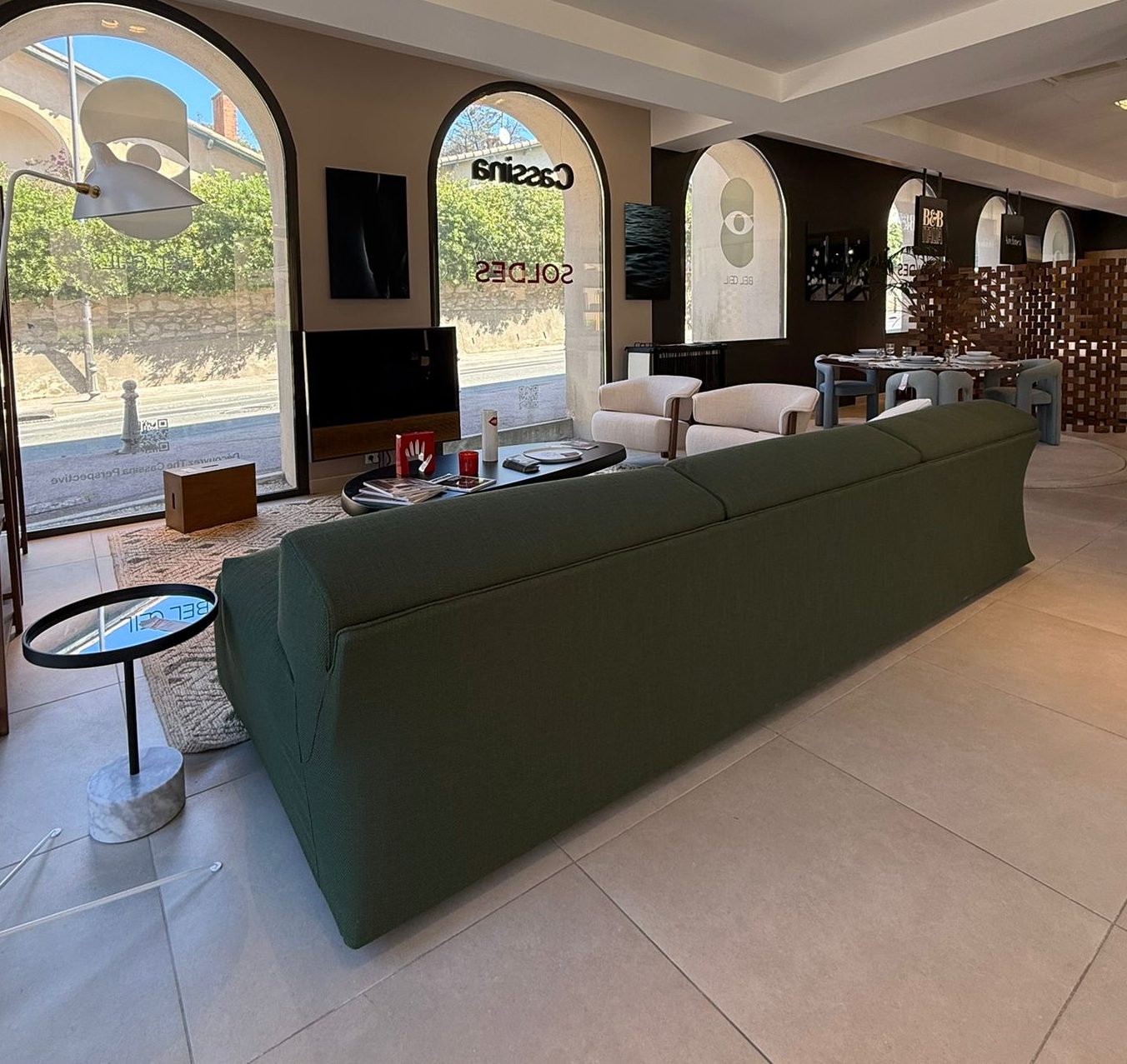 En effet, il s’adapte facilement à différentes configurations selon les volumes du salon et les besoins du projet. Il peut ainsi structurer un espace réception, un séjour contemporain ou un intérieur d’architecte.