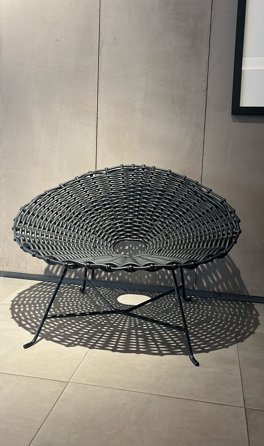 Ce fauteuil se compose d’un tressage en PVC noir mat, travaillé avec précision pour créer une texture visuelle riche. Ce matériau moderne offre à la fois résistance et souplesse, garantissant une excellente durabilité. Par ailleurs, le tressage met en valeur un savoir-faire technique remarquable. La structure conserve une légèreté visuelle tout en affirmant sa présence. Ainsi, le fauteuil Sweet 27 associe innovation et artisanat dans un esprit design maîtrisé.