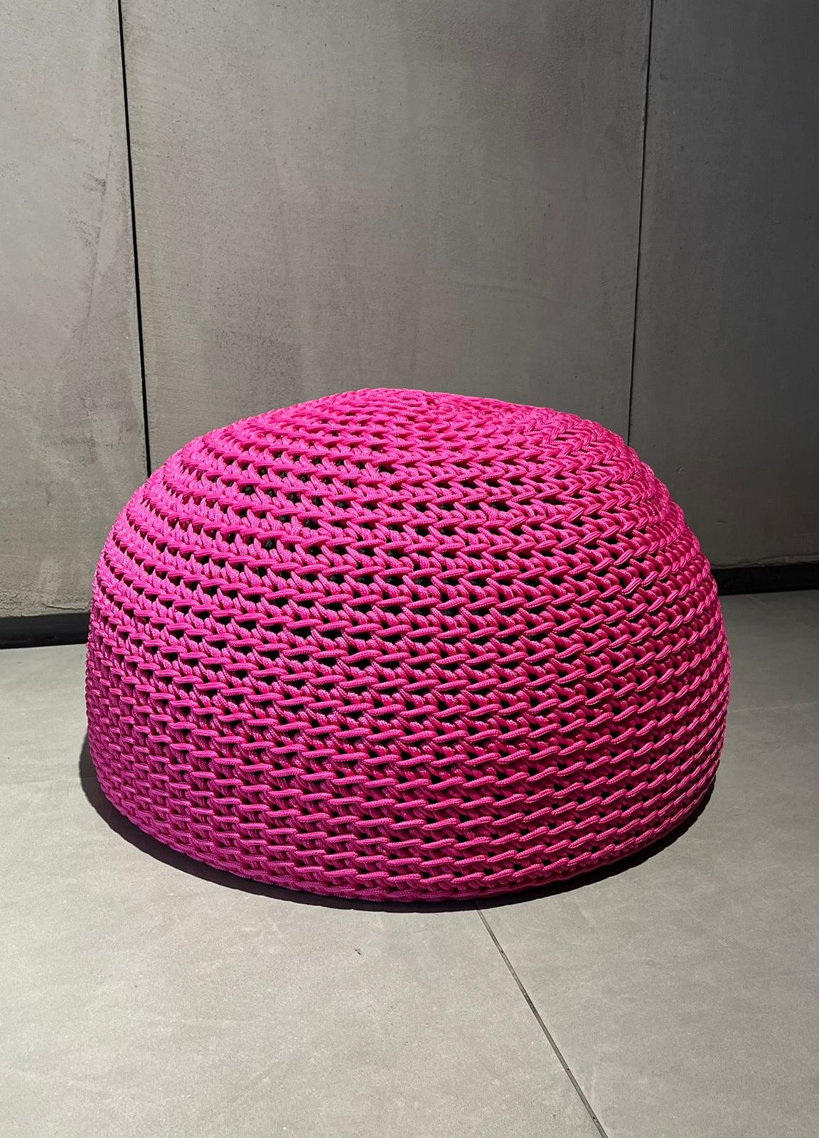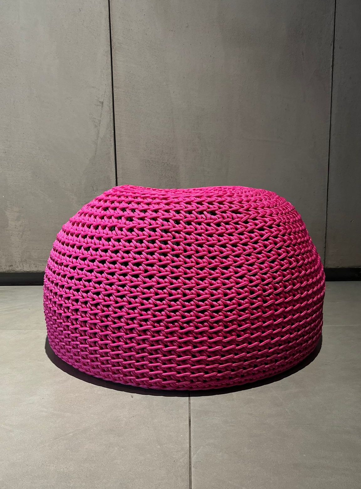 Conçu pour résister aux conditions extérieures, ce pouf associe innovation et matériaux performants. Son intérieur se compose de sphères de polystyrène, assurant une assise souple et ergonomique. Ensuite, une housse en polyester technique permet un drainage efficace de l’eau. Ainsi, même après une exposition à la pluie, le pouf conserve ses qualités. Par ailleurs, le tissu “Rope” en crochet fait main renforce son identité luxe et artisanale. Cette combinaison garantit un usage durable tout en conservant une esthétique haut de gamme.