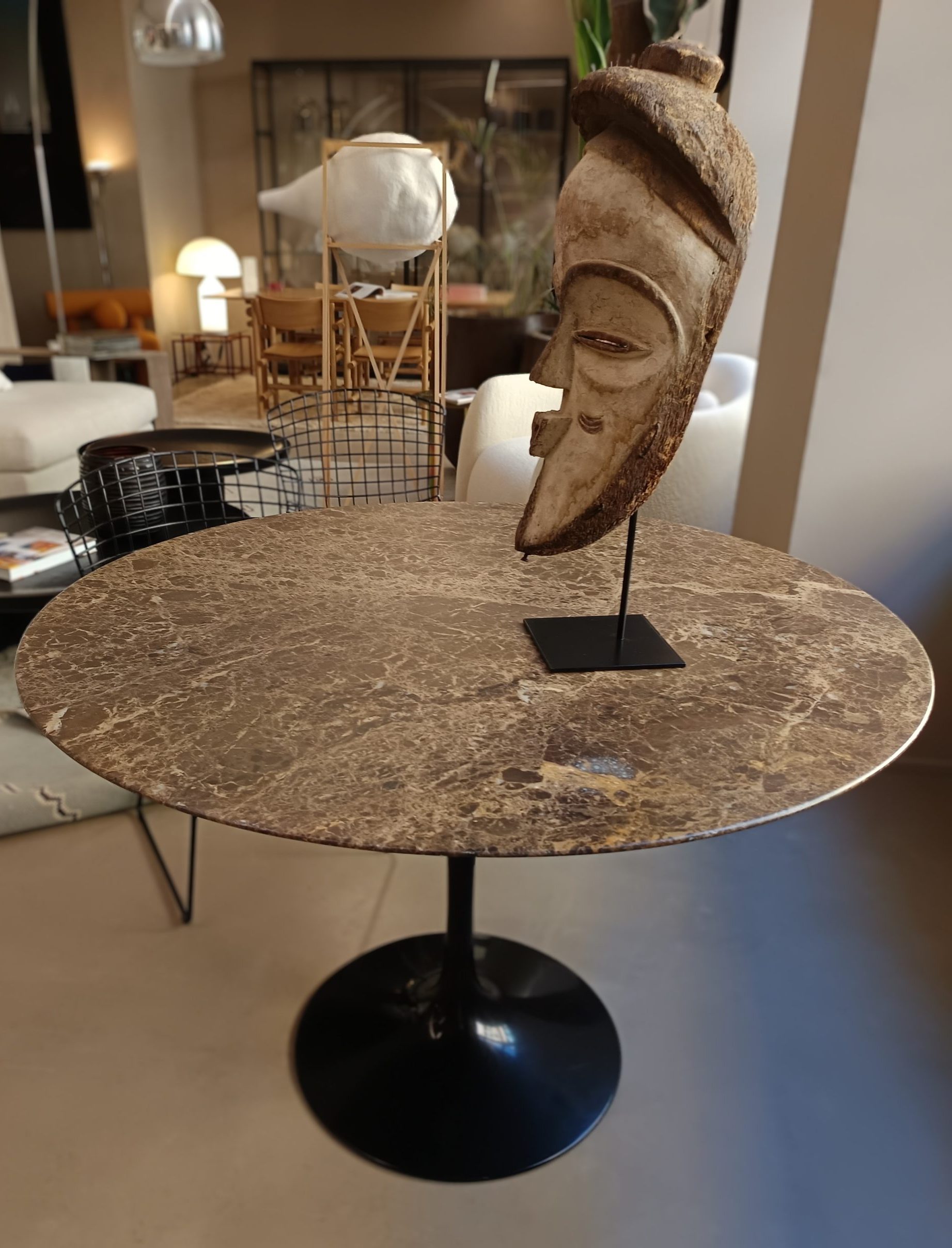 La table Saarinen Emperador signée Eero Saarinen pour Knoll, créée en 1957, demeure une référence absolue du design haut de gamme. Dès le premier regard, elle séduit par son équilibre parfait entre pureté des lignes et élégance sculpturale.